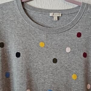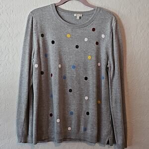 Talbots Gray Cotton Knit Sweater Multi Color Polka Dots Size Large