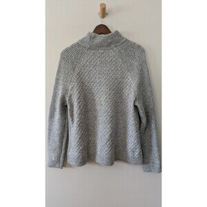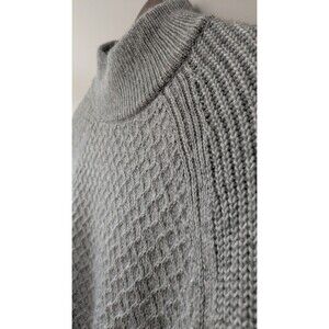 Elegant gray turtleneck with intricate knit pattern. Perfect for cozy style.