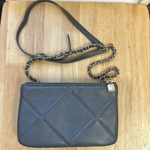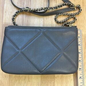 Talbots Grey Leather Quilted Crossbody Bag With Gold Chain and Leather Strap