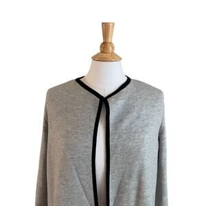 Talbots Gray Merino Wool Blend Long Line Cardigan / Cardigan Coat / Duster Size Large Petite.