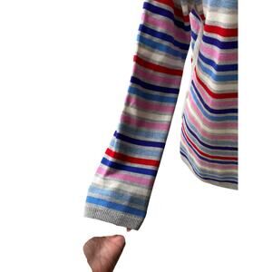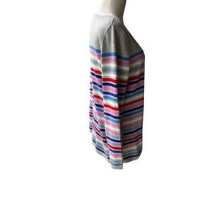 This stylish Talbots long sleeve sweater has accent buttons on each side and a unique gray multi-color striped design. Perfect for adding a pop of color to any outfit. It is pre-owned in excellent condition.