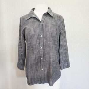 Talbots Gray Pin Stripe Linen Blend Button Down Size M