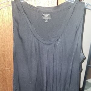 This Talbots tank top features a sleek sleeveless design in a sophisticated gray hue. The pleated detailing adds a touch of elegance to its simple, casual style. Perfect for layering or wearing on its own, this top offers a versatile addition to any wardrobe.