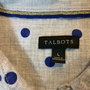 Talbots Gray Shirt with Blue Polka Dots and Gold Trim