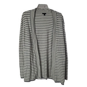 Talbots Gray Striped Open Front Lambswool Blend Cardigan Sweater Size Medium