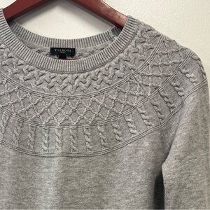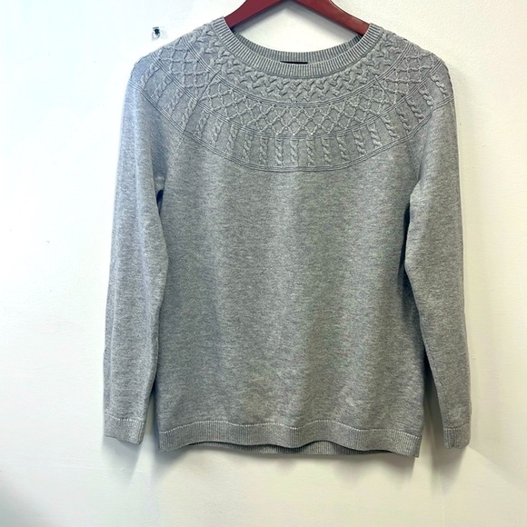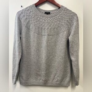 Talbots Gray Sweater Yoke Crew fairisle pullover Cotton cashmere Blend Medium