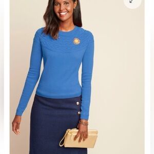 Cozy. Classic. A timeless sweater yoked with knit cable trim. Talbots Pull-over Crewneck, long sleeve, hits at hip,