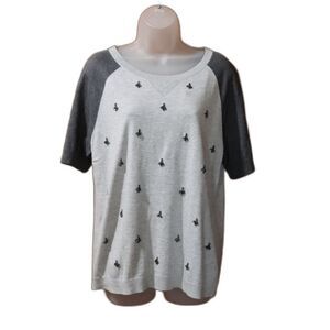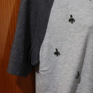 Talbots Gray and Blue Beaded Short Sleeve Blouse Large