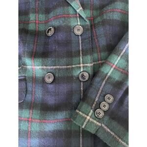 Talbot's Green & Black Plaid Double Breasted Wool Blazer size 14
