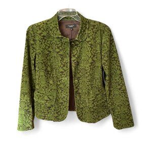 Talbots Green Brown Corduroy Paisley Damask Print Collared Button Blazer Jacket