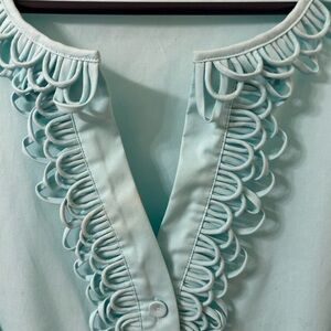Talbots Green Button Down Blouse with Ruffled Bib Collar