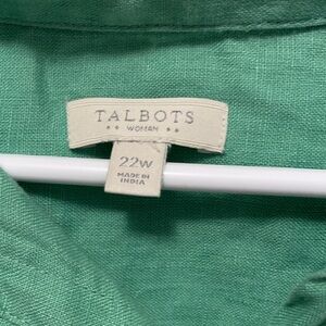 Stylish green button-down shirt by Talbots. Ideal for casual or professional wear. Soft fabric and classic design. 100 percent linen