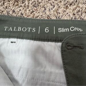 These Talbots chinos feature a classic straight leg cut in a rich green hue, crafted from durable cotton for everyday comfort. They are a cropped slim fit.