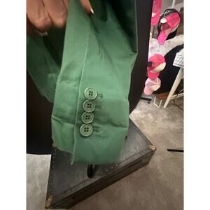 💚 Classic style meets bold color with this gorgeous Talbots green blazer! Perfect for the office or elevating your casual look, this structured piece features a three-button front, tailored silhouette, and striped lining for that polished touch. Made of a smooth cotton/linen blend with a 100% polyester lining, it’s a breathable, refined layer for year-round wear. Timeless and versatile, this size 8 jacket is a wardrobe staple! ✨