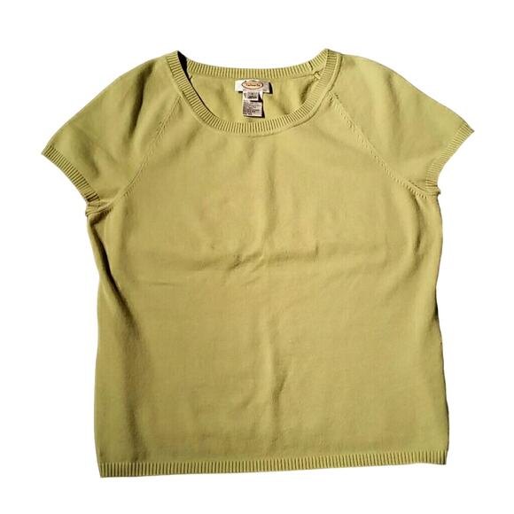 Short Sleeve Mostly Cotton Green Sweater. Pit to Pit 20". Length 24". T10