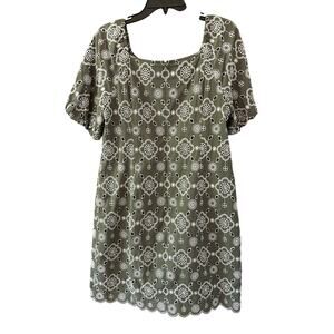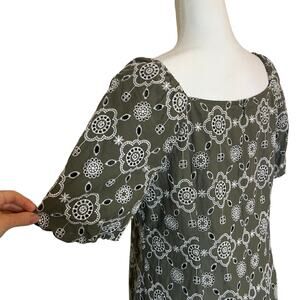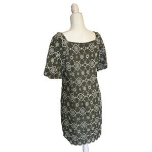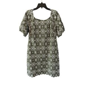 Talbots Green Embroidered Puff Sleeve Dress Size 10 Boho Eyelet Floral Shift