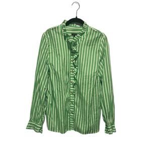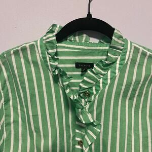 Talbots Green Striped Button Up Top Ruffle Front NWOT Size Large