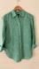 Stylish green striped button down shirt. Features long sleeves and a classic collar. Perfect for casual or office wear.