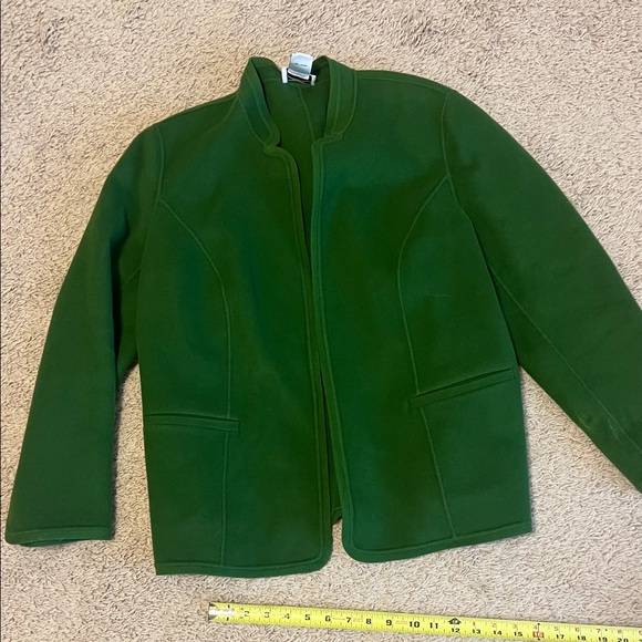 Elegant green jacket by Talbots. Ideal for stylish layering. Love this color. Has front pockets and shoulder pads! Gently worn!