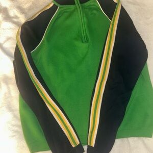 Chic zip-up sweater by Talbots. Features vibrant green and sleek black. Ideal for casual wear.