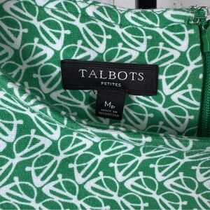 Talbots dress size medium petite. Green and white with cute sunglasses print. Fitted at top and flare bottom. Great condition. Smoke free home.