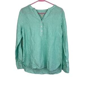 Talbots Green and white striped 1/2 button up Linen blend blouse size small
