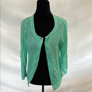 Talbots Green cotton Cardigan Sweater Lightweight V-Neck