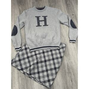 Talbots Grey Blue Skirt Womens Wool Blend Straight Plaid Size 4