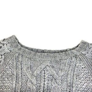 Talbots Grey Cableknit Pullover Sweater with Embroidered Shoulder Details