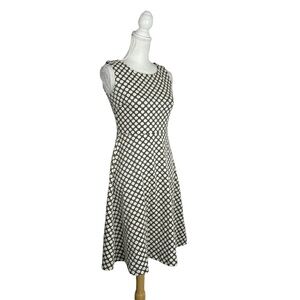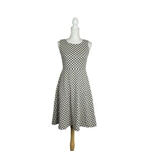 Talbots Grey & Cream Brocade Polka Dot Fit & Flare Dress Classic Versatile