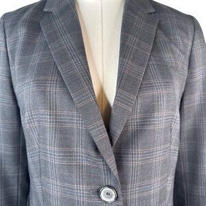 Talbots Grey Size 4 Plaid Two-Button Blazer Wool Blend