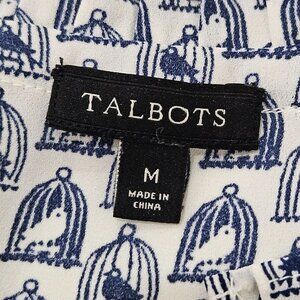 Talbots Grosgrain Trim Crinkle Blouse Medium Birdcage Print Blue