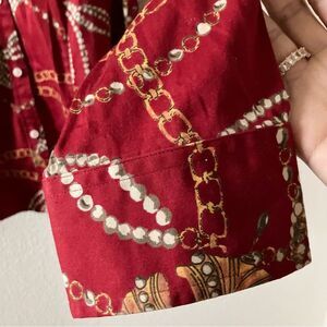 Talbots Haberdashery Red Preppy Medallion Links & Pearls Print Button Up Shirt