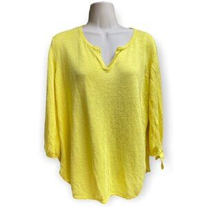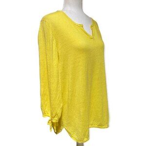 Talbots Hamptons Yellow Linen Sweater 3/4 Tie Sleeves Split Neck Size L Dopamine