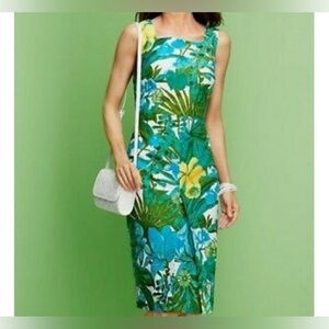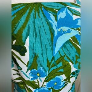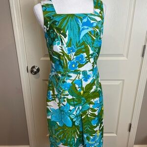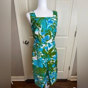Talbots Hawaiian Floral Sleeveless Dress in Blue and Green