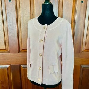 Talbots Heavy Knit Texture sweater Blazer Petite M Pink Academia Jackie O