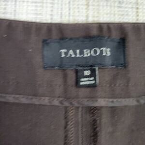 Talbots Heritage brown trousers with a Side Zipper. Bi-Stretch and Straight Leg. Cut from refined bi-stretch fabric, these ultra-polished pants feature a tailored straight-leg with a streamlined slim-fit and natural recovery. They're fashioned with a slenderizing side-zip entry and a clean, pocket-less front