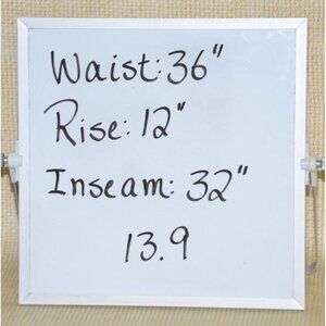 Great Condition. These pants are in like new condition except for one flaw. The button along side the hip zipper is missing. Please see Pictures