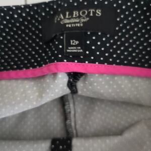 Talbots Hertiage Slim Black White Polka-dot Flat Front Slacks Business Chic 12P