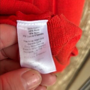 Tiger orange in color size large no flaws super soft length top to bottom is 25” armpit to armpit width is 20”