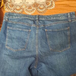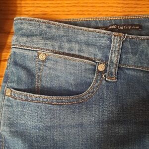 Talbots brand size 16 petite, straight leg, crop, blue jeans with 5 pocket classic style. Stylish high rise jeans by Talbots. Classic blue hue. inseam approximately 21 and a half inches.zipper fly metal button closure, belt loops and back yoke seaming. Great condition. Perfect for everyday wear. classic denim that never goes out of style.