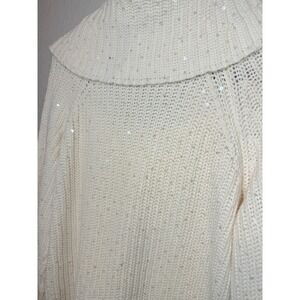 Talbots Holiday Embellished Cowl Neck Sweater Sparkly Knit Cream Women's