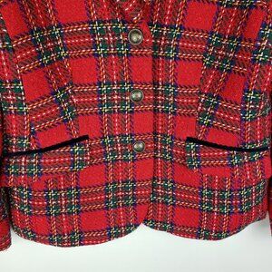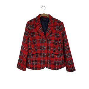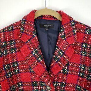 Talbots Womens Size 10P Petite Classic Red Plaid Heavyweight Wool Blend Holiday Blazer