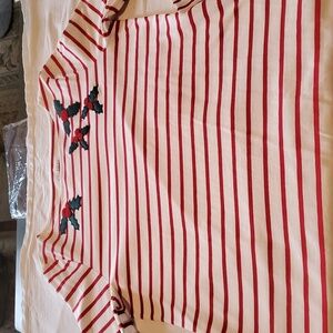 NWT...This stylish shirt features a classic red and white stripe pattern with a charming embroidered design. Perfect for Holiday outings, this top combines comfort and style effortlessly. Check out all pics for details and approximate measurements.