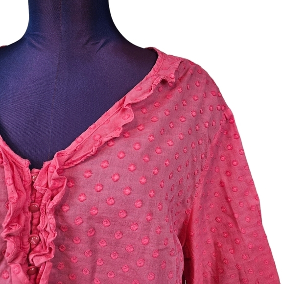 In excellent condition Talbots Hot Pink Eyelet Peasant Blouse Ruffle Placket Size 2X Women's Plus.