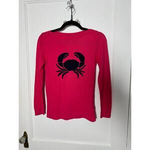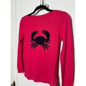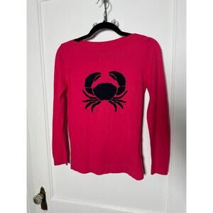 Talbots Hot Pink Navy Blue Nautical Coastal Crab Sweater Women's Small Petite