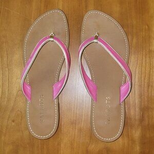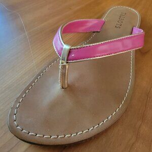 Talbots Hot Pink Thong Sandals With Gold Accents - 7M