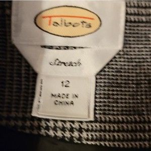 Classic lined houndstooth knee length size 12 pencil skirt front Talbots with back slit and pockets. Material Shell 98% Wool 2% Spandex Lining 100% Polyester. Measurements 16 3/4 inches across waist, length 21 1/2 inches
