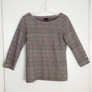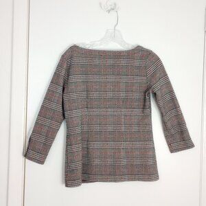 Talbots Houndstooth Plaid Boatneck 3/4 Sleeve Top