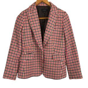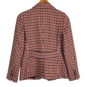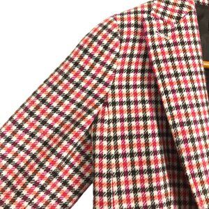 Talbots Houndstooth Plaid Women's Wool Blend Blazer Sz 8 Pink Red Belted Lined